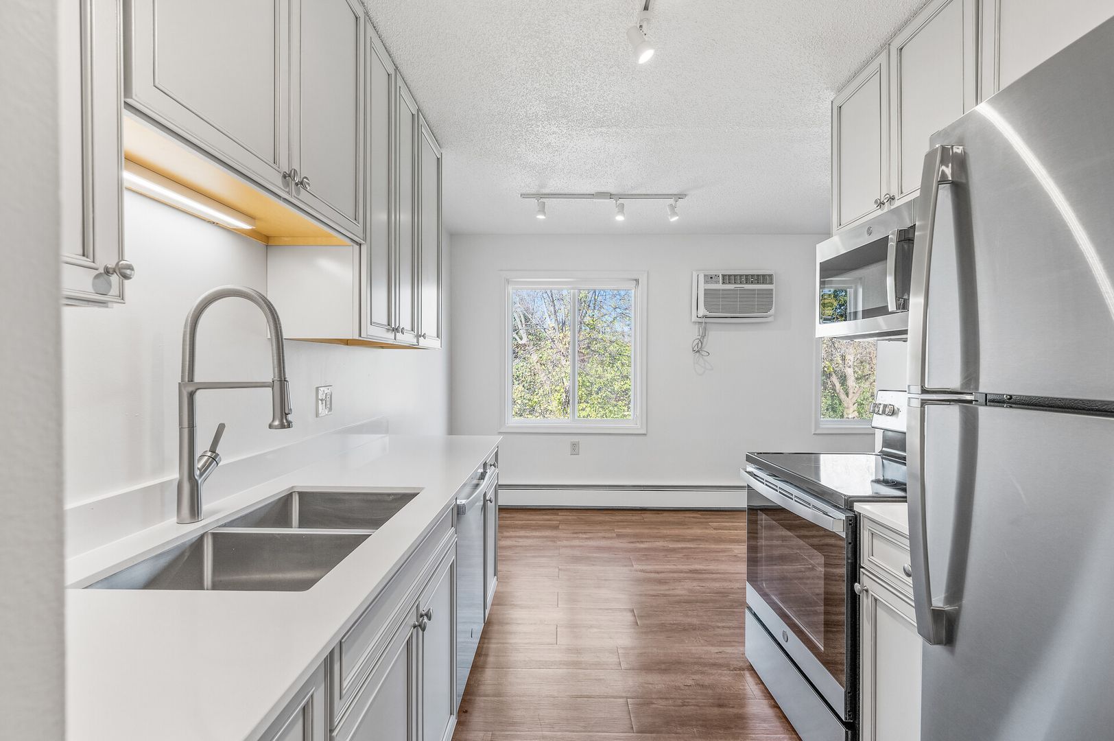 Spacious, newly renovated 2 bed 1 bath corner unit.