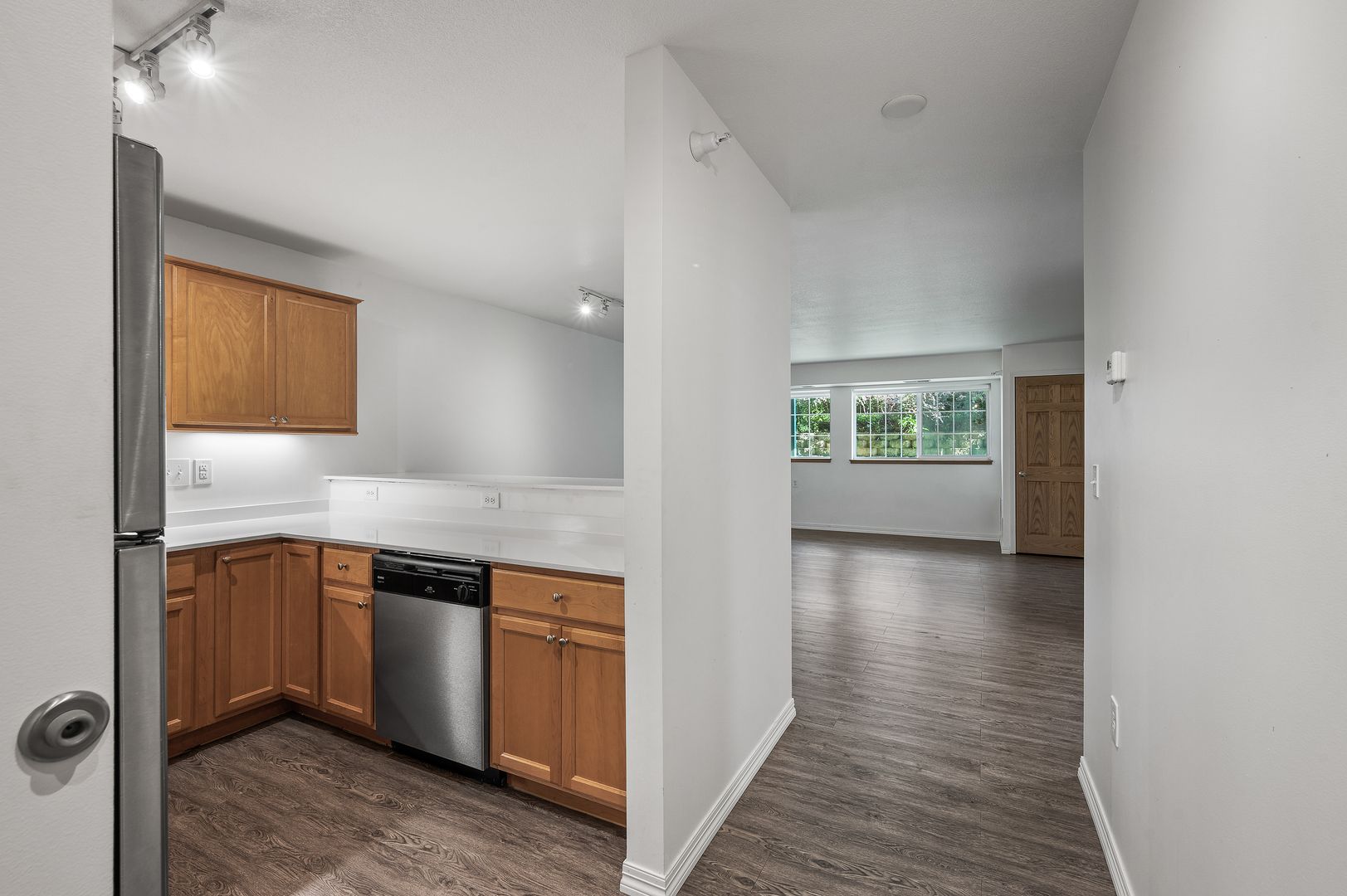 Pet friendly building with one-time $150 fee and monthly pet rent of $45 for dogs and $25 for cats. Photos of a similar unit.