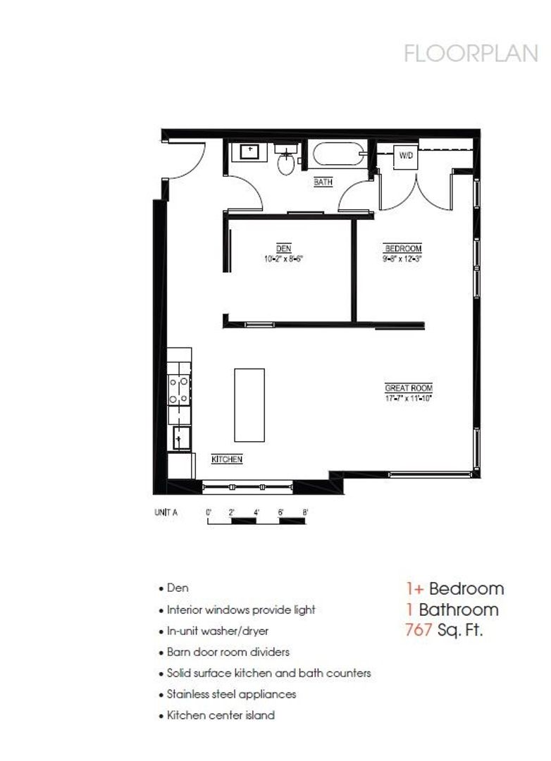 Beautiful 2nd Floor Corner Unit 1-bedroom plus bonus flex room (den/office/2nd bed) in Boutique Kingfield Building $1,795